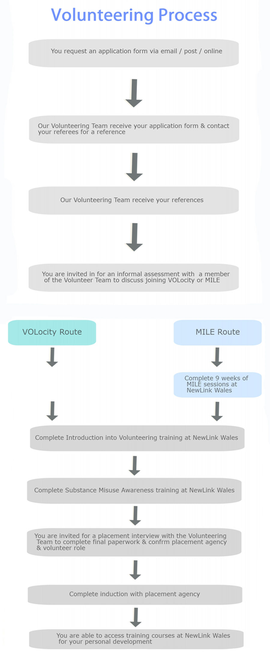 The NewLink Wales volunteering team are more than happy to be a reference, however we will only be able to comment on your time during training with us. For hands on volunteering experience reference, your placement agency would be best suited.